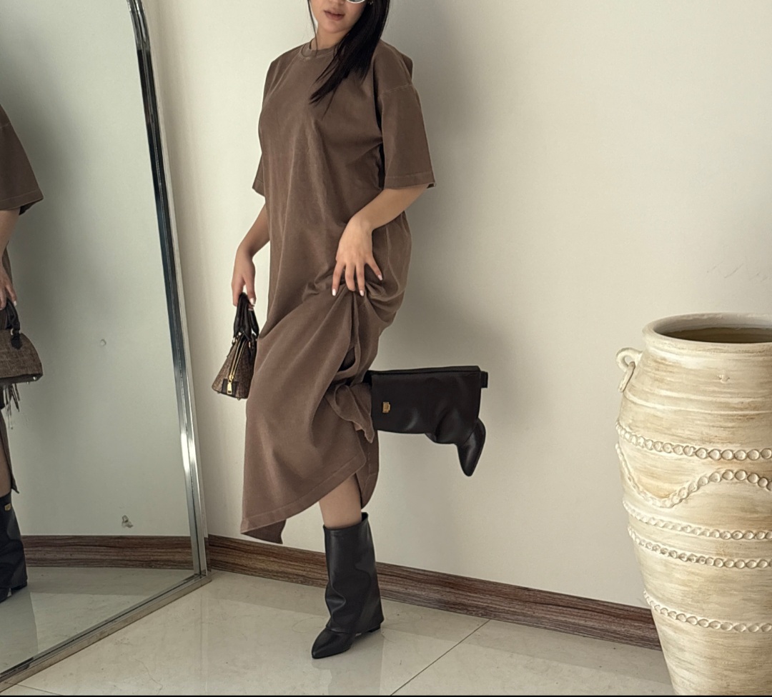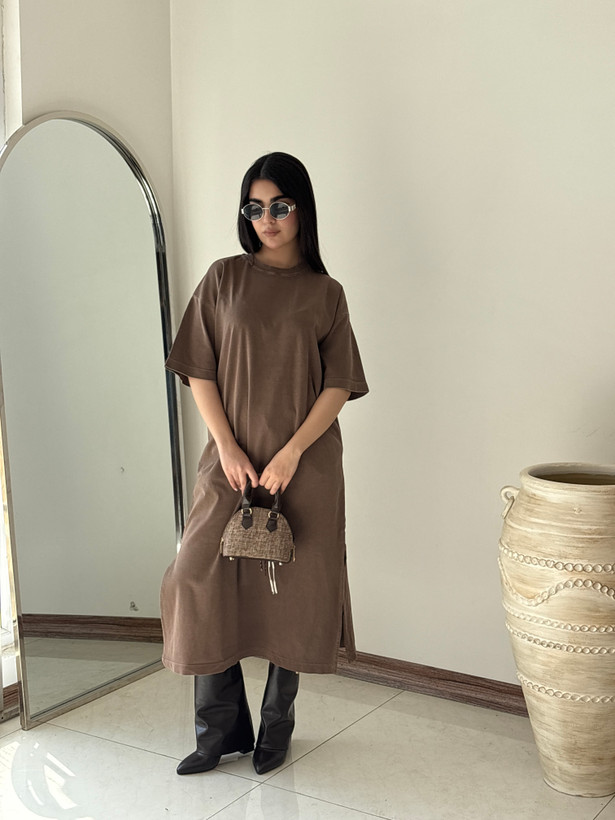 تیشرت پیراهنی ساده قهوه ای هیمه استایلیش