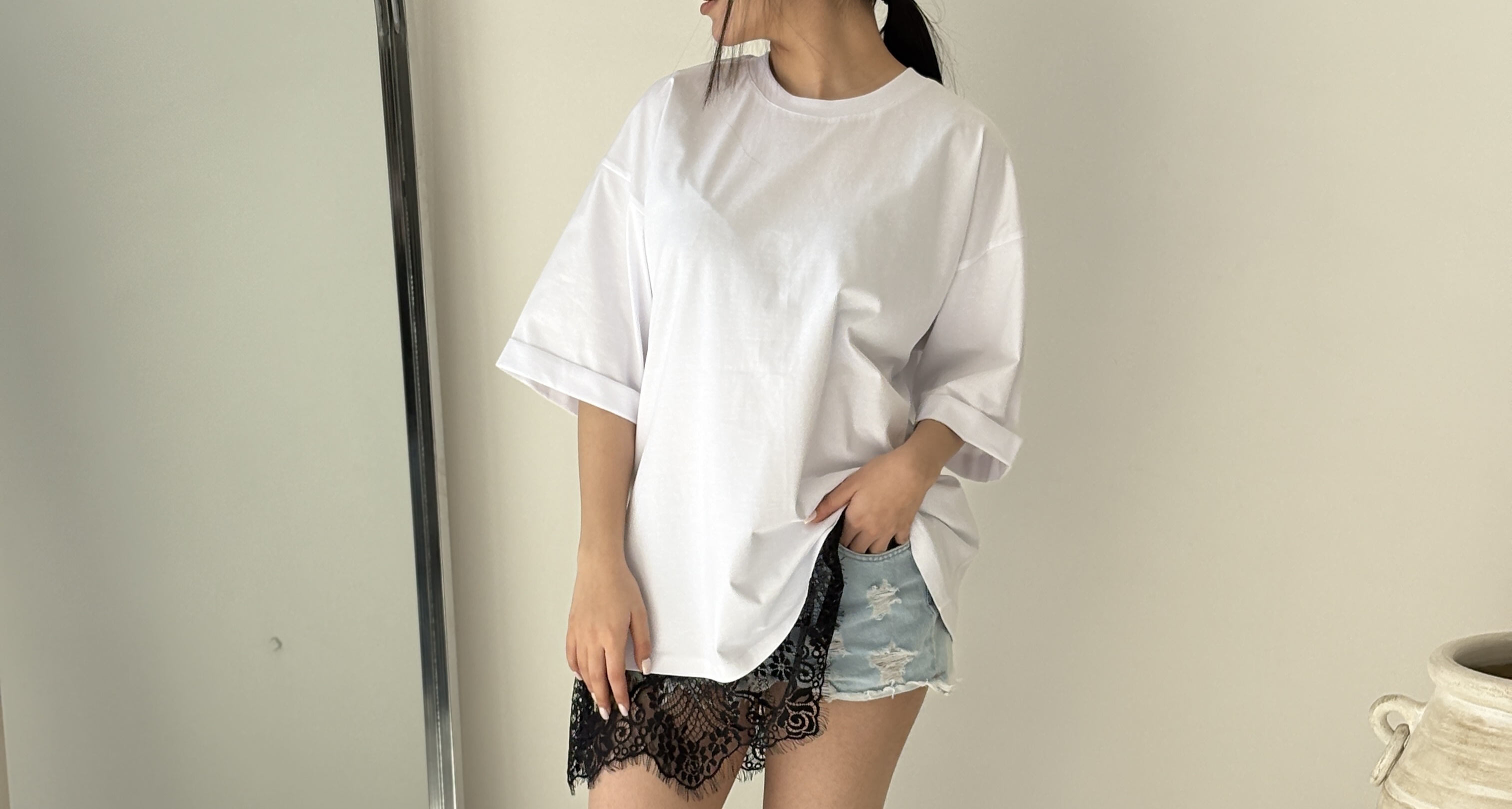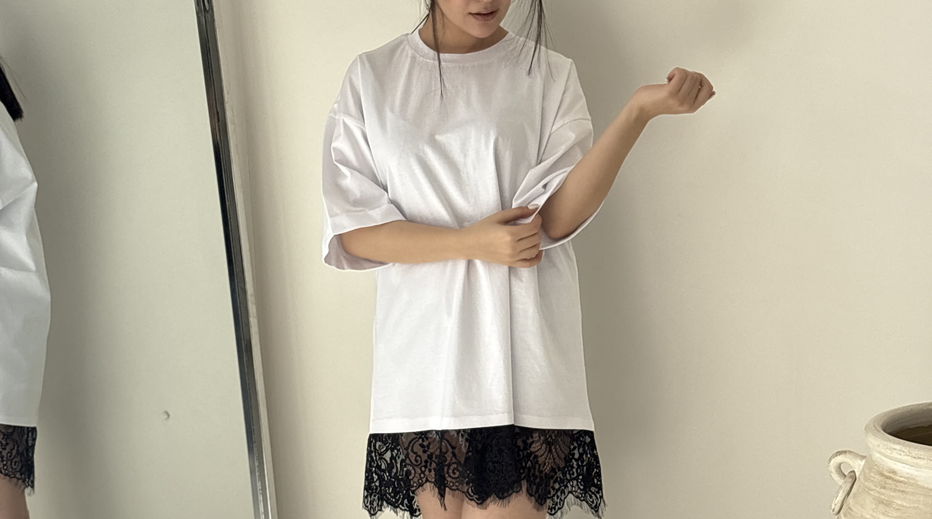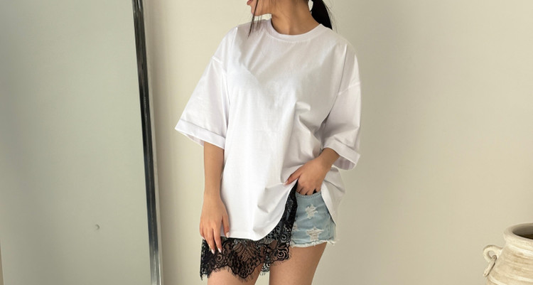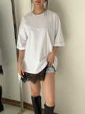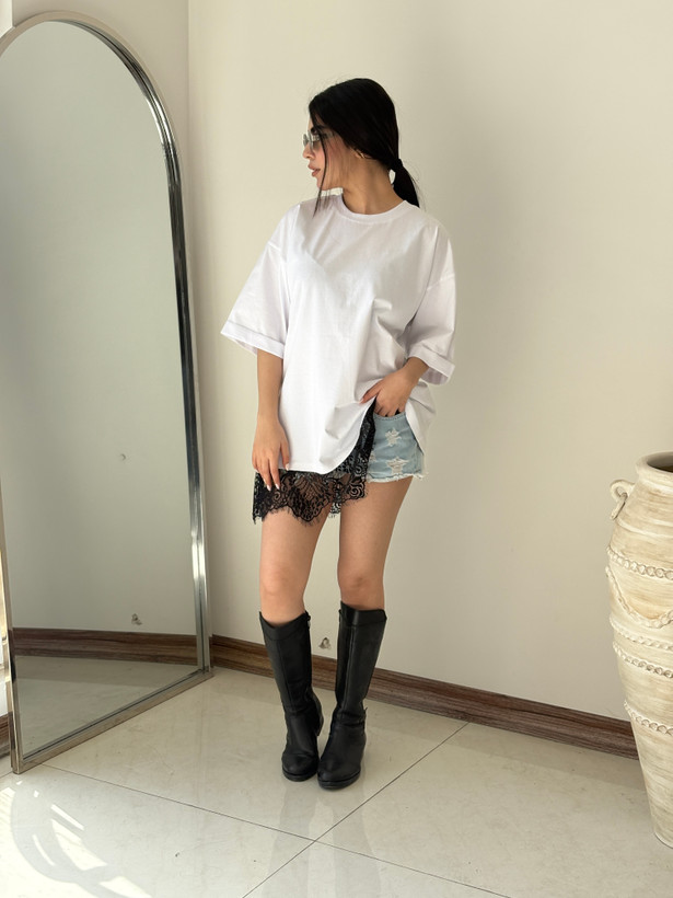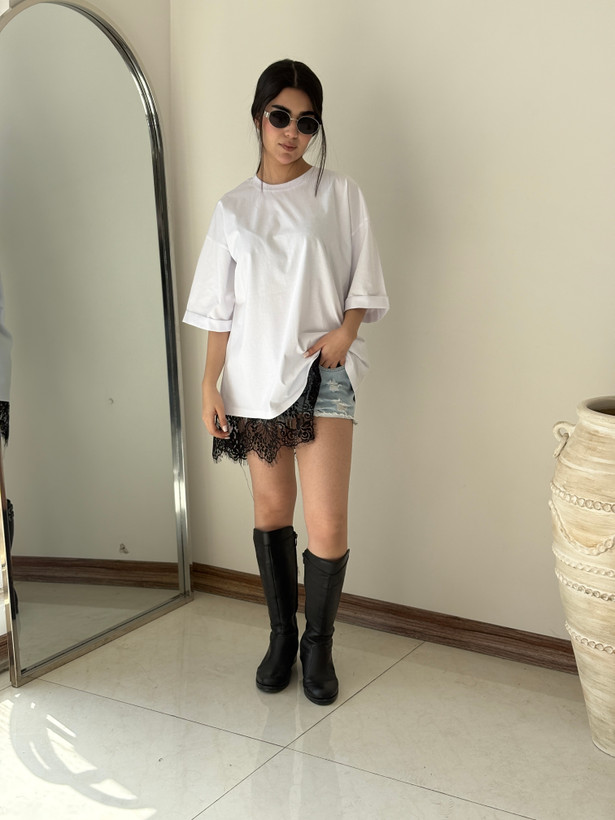 تیشرت لانگ دانتلی سفید مشکی هیمه استایلیش