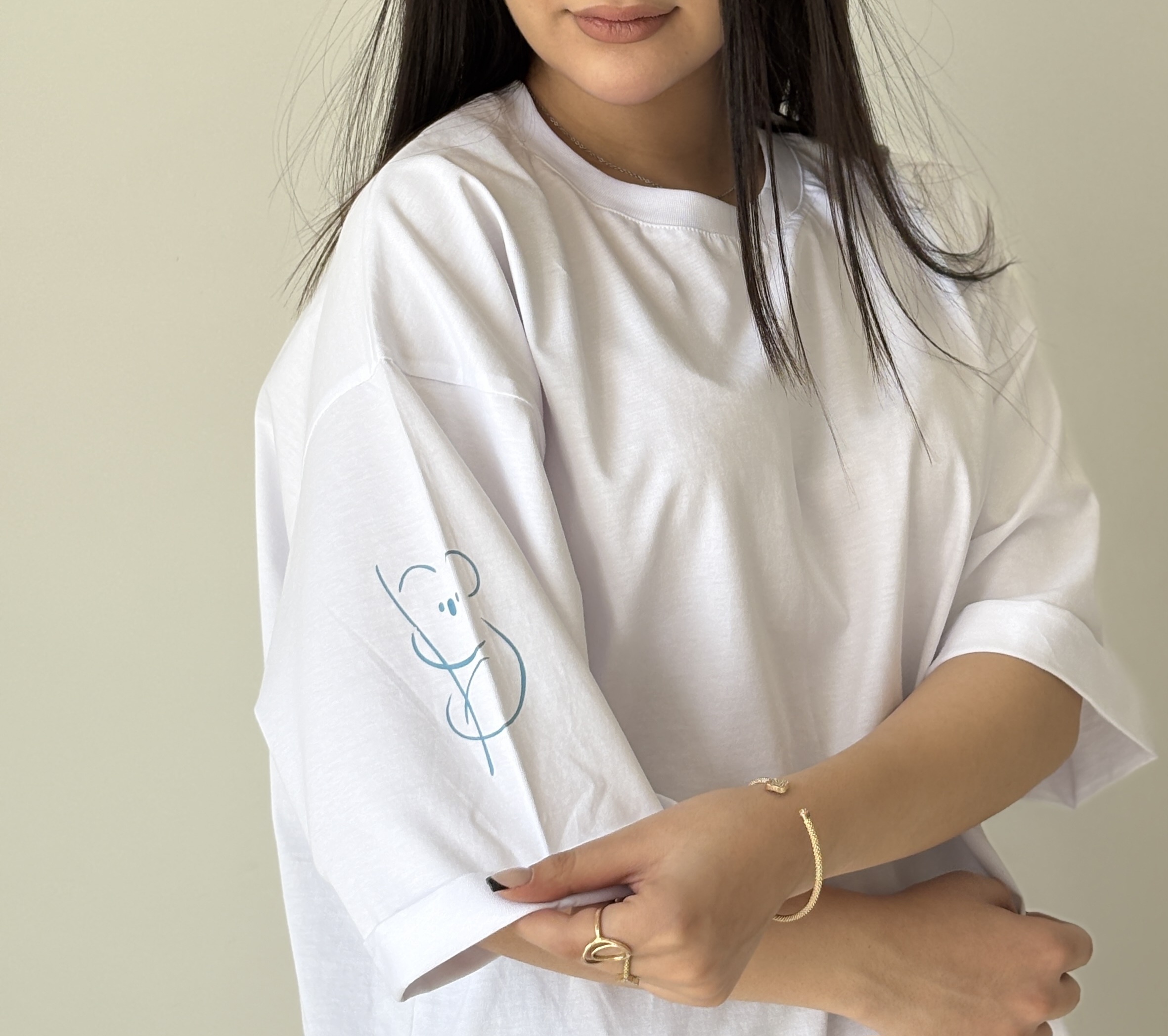 جنس نخ پنبه کریستال درجه یک قد حدود ۷۵ دور سینه حدود ۱۱۶ طرح کوالا روی آستین و پشت لباس جلو لباس بدون طرح